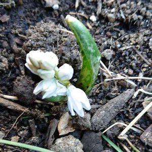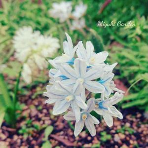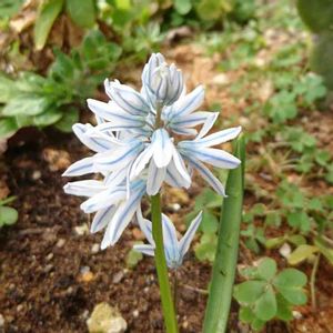 これは何だろうか?😟 氷の妖精っていう球根を植えたような気もするけど忘れてしまった😅 プスキニアだったかな…😌 ピンボケたわ