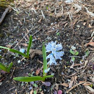 咲いてるのは クロッカス スノードロップ プスキニア だけ 植えた覚えのない所から 出てくるのは何故かしらʅ(。◔‸◔。)ʃ 花友さんに名前を 教えてもらいました! "プスキニア"