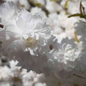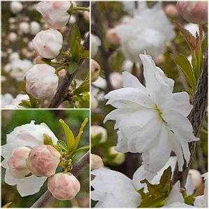一昨日の雨で散ってしまいました☔💧 この時季の庭は白の花が多く咲いています🤍 芽出しに白の花は とても美しくて🕊🤍🎶 このニワザクラは八重ですが 以前、ヒトエノニワザクラを育てたことがあります。 ニワウメのように綺麗なルビー色の実はならず いわゆる人間が食べない🍒がなります。 母種であるヒトエノニワザクラは中国中部に自生。 『日本の樹木』補足 より