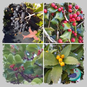 2021/01/25 花散歩で🐾👣… であった… 赤、黄色、黒い実… ❤(ӦvӦ。)💛🖤💚 ヤバネヒイラギモチ❣️🌿↗️ クロガネモチ❤️💚↙️ ネズミモチ🖤↖️ 千両…黄色💛↘️… いいお天気…☀… 春みたいな…🌸💮🥀🍀気分に…🙆❤(ӦvӦ。)🥀🌿🤗🥳…