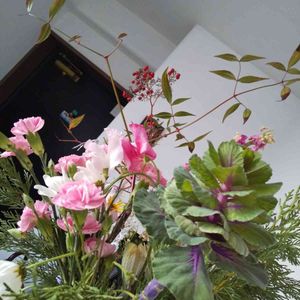 お正月の花…後ろから…パシャ📱! この葉牡丹…根が出て元気なの…💚💜 (@_@;)!!!!!!…😲😲 きっと花が咲くわ❤(ӦvӦ。)!!!ウフフ…