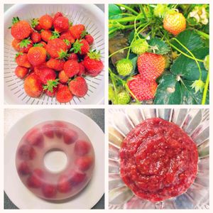 我が家のイチゴです~。小さいながら、収穫しました。 トマトケチャップのような濃厚な手作りジャム。 かんてんパパがなくて、ゼラチン(原料)でゼリーを作ったけど、型からはずれない〜(笑)。仕方ないので、クラッシュのゼリーにして食べました。