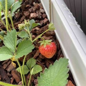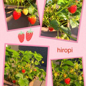 収穫までもう少しの我慢だ🤤笑 今のところちゃんと成長しそうなイチゴが13個ほどなっています🍓 楽しみだなあ!