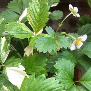 斑入りガーデンストロベリー? ハーブのいちごです。たまたま1株だけ斑入りを見つけて買いました。