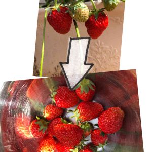雨予報のため2回目 収穫しました🍓 1回目は4個だけ(^^) 最終的に大きめ果実となってくれ頑張ったイチゴにありがとう♡