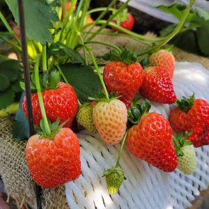 🍓いちごの寄せ植え🍓 ❤️🤍💗の寄せ植えです。 白いいちごの実が赤くなりました❣️ 小粒だけどお味はどうかな?