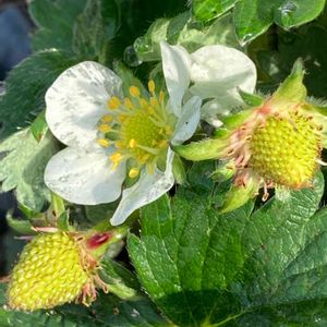 一週間でまた成長しました🍓♡ 欲張って花数を減らしてないため 食べれるイチゴになるかどうか 鉢もとても小さいし😰鉢増ししたいけど植替えは怖いので、このまま成長を見届けます🍓
