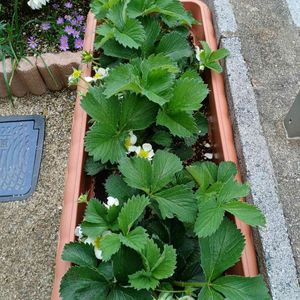 去年仲間入りした2株の苗からランナーがどんどん出てきて かなり増えたいちごちゃんたち🍓 コンポストで作った土を足してあげると元気が出てきて、少しですが収穫もできそう💓去年は実がなったものの、何者かにかじられて収穫できず😭 大切に育てたいなぁ🥰