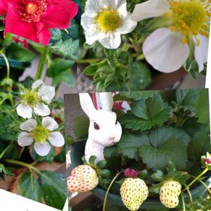 可愛く咲いていました🍓 晴れて気持ち良い午後🐰