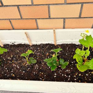 晴空☀️ 気温はまだまだ低めの北海道。 上着で調節出来るから過ごしやすい気候です💕😘 今日の鉢植え🪴📝 🍓ローズベリーレッド サントリーさんの苗です💕 真っ赤なお花が素敵な四季なり苺✨ お花も実も長く楽しめるのが嬉しいなぁ💕 一昨日は元気な苗で長く楽しめました。 去年は個人の園芸屋さんからお迎えしたのですが、プレートも無く初めから見るからに弱々しくて。 結局育ちませんでした。 今年は一昨年と同じお店で元気な苗を購入🎶 大きく育ってくれそうです💕😘 🍓めちゃデカッ!いちご デルモンテさんの苗です💕 ネーミングに目がいってお迎えしてした子です✨👀 心の中で 「どんだけぇ〜」と思いながら。😉 こちらも四季なり たくさんお花が咲いてきました💕 ネーミングプレートの字も大きくて 大粒になるんだろうなぁと期待大✨😘 実はもう一種類新しい🍓の苗もお迎えしています🎶 そちらはまだお花が咲いていないのでもう少し先で投稿したいと思っています🎶🥰 子供達に届けてあげらる位にたくさん実が付きますように✨🙏 キラキラ素敵な金曜日を✨🥰🍀