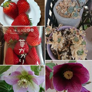 イチゴの日に参加します✨ 今回は岐阜県産の華かがりです😆🎵🎵近くのスーパーで買って来ました😆 色んな🍓イチゴを買って食べ比べるのも楽しいですね😃✌️美味しかったです😋🍴💕 子持ち蓮華と千島小岩蓮華ちゃん✨これが‼️お目覚めって言う事かなぁ⁉️初めて見る姿なので😆⤴️💓嬉しいです☺️ クリスマスローズはご近所さんから頂きました😆 ありがたいですね😆素敵なお花です➰💮
