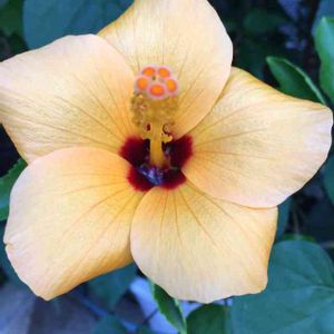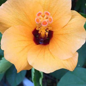 おはようございます😃 昨日の蕾が今日は、すっかり開いてたハイビスカスさん^_^♡♡♡ 色合いは、もっとオレンジ色が強いんですが、、、残念。。。 アイホンではこんな感じです〜〜😂