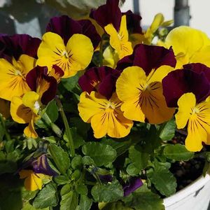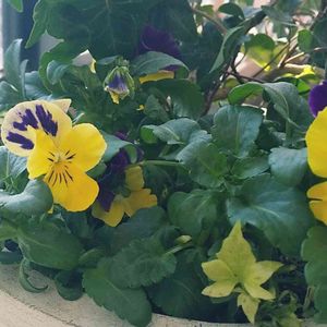 よく咲くスミレ💜💛💙 海から強い西風が吹いています。 このpicを撮ってる時は静かだったのに。 ネコバスの鉢のお花、今日はアップで♫ 青色のソーダさん、美味しそうなスイートポテトさん ギューって咲いてます(≧∇≦)