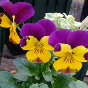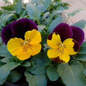 よく咲くスミレ スイートポテト兄弟💛💜 左、品行方正な好青年の兄 右、アゴヒゲチャラ男の弟 同じ種袋の種から育ち、数日差で開花しました・・きょうだいってこういうふうになりがち😅 でも、どっちも元気な良い子です😄