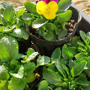 ビオラ💛💜 よく咲くスミレ 9/14種まきから71日後、 開花一番乗りはこの子でした😄 スイートポテトさん、おいしそうな名前だ😄