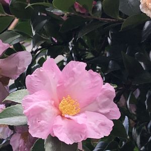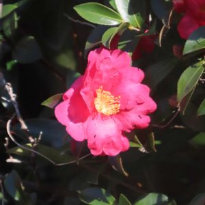 サザンカ(山茶花) 通り道の駐車場側のお宅に 午後の散歩道