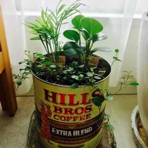 周りの人には缶のインパクトに植物が負けていると言われるものの、自分としては気に入っています(笑)