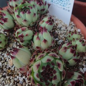 花フェスタで狩った多肉たち、ラストはお買い得価格になっていたセンペルビウムのカルカレウム。 もっといろんな種類もあったのですが、すでにこの時点で多肉だけでも21鉢も買ってたので1個だけにしておきました。 いっぱいチビがついていてもりもり増やせそう🎵 天気と気温と多肉たちの様子を見て、秋になったら一気に植え替えですね。冬越しに向けて鉢の整理を始めなきゃ!😆