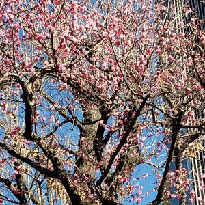 雨上がりでぬけるような青空 ちらほら咲き出した梅の花。 春はもうすぐそこですよー。