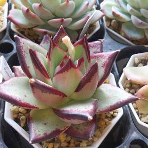 今日も雪❄のチラつく寒い一日でした😣 お迎え3年目の エケベリア・カサンドラ (カンテ×シャビアナ交配) 下葉カリカリで小さくなったみたいです😓でもピンク色のフリフリが可愛い薄葉のエケベリアです~💝