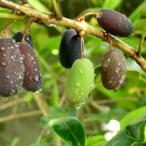 おはようございま〜す♬ 😊 ⚪︎6月16日(水) ⚪︎杜の都 仙台 ⚪︎日の出:4:12 ⚪︎天気:☁️ ⚪︎気温:19.4℃ ⚪︎風:南南東2.0m/s *日の出時刻の気象です ❀マルバヒイラギの果実 ❀ 💚→💜→🖤 マルバヒイラギは11月に真っ白で小さな花を咲かせます 木犀と同じような花です ❀❀ 果実は1.3cm程の可愛らしい実です😍 これが、なんとヒヨドリの好物らしい 食べ頃がわかるんですね•••🐦 今朝までに殆ど食べられてしまいました...😤 一部、網をかけて保護中です...試食の為😅😆 📷:2021.6.12🌤 今日もお元気でお過ごし下さい🤗