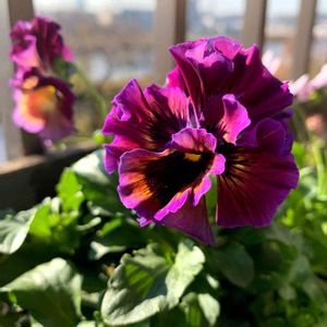 今日のお花はパンジー❣️ こちらは本日お迎えしたベランダのレギュラー、ミュールさん✨✨ 今期はチョコベリーさんと春までハンギングでコラボして頂きます💜🥰