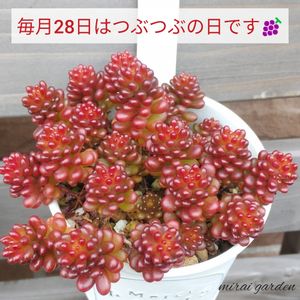 おはようございます☁ 本日1月28日、みちのすけちゃん&みらいのコラボで続けてきたつぶつぶの日が、なんと1周年を迎えることになりました👏👏👏 これも一重に皆さんのおかげです(❁ᴗ͈ˬᴗ͈)) ありがとうございます🤗 これまで1年間、巡回のコメントをさせて頂きましたが、この1周年を機に巡回コメントを控えさせて頂きたいと思いますm(*_ _)m これからはつぶつぶの日がひとり立ちしてくれるよう、みちのすけちゃんと2人、告知に勤しみたいと思います(ง •̀_•́)ง これからもつぶつぶの日をどうぞよろしくお願いします(⁎ᴗ͈ˬᴗ͈⁎) 1周年のつぶつぶの日はこのレッドベリーちゃんと決めていました💕🍇 ずーっとずーっと、昨春からここにいるレッドベリーちゃんなんです❤ 信じられないほど元気なんです😆軒下無しの超雨ざらしの場所です💦 リベンジのレッドベリーちゃんは、以前꙳★*゚にしてしまった時は、室内の出窓で過保護にしてダメにしちゃったんです😓 リベンジと決めてお迎えした時、今度は一か八かのチャレンジで全く真逆な環境にしてみようと、思い切って外管理にしました🌱 おかげで昨年はカイルさんとの交換会でもレッドベリーをおすそ分けすることができるほどになりました👏😆❤やったぜ私🤣 私がレッドベリーを増やせるなんて、夢にも思ってなかったけど、夢が実現しました😁👍 今日も寒いですが、こんなに元気なレッドベリーちゃんを皆さんに見て頂きたくて(❁ᴗ͈ˬᴗ͈)) 今日は職場の健康診断💦朝食抜き💧お腹がぐぅぐぅ鳴ってる( ´›ω‹`) 今日も遅番出勤。。。早く健康診断終わって、何か食べた〜い(˶‾᷄ ⁻̫ ‾᷅˵)
