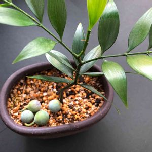 「 ナギの実の発芽 」 12月3日に植えたが 春を迎えても何の 動きも無く5〜6月も経ち…そのまま オリーブの木の根元に 去年差し込んだ オリーブが芽吹き成長し出し… 芽吹く様子の無いナギの鉢に移植してあげ ナギの実はポイ ポイ…したんです、 この7月30日の一週間前に ウゥ ?ナニ こんなU字型の針金…?抜こうかな〜 抜かなくて良かった 何かの芽🌱かな… 処分したつもりの 一粒が残っていたんです 現在この様に成長して 何か とても 嬉しい気持ちです。