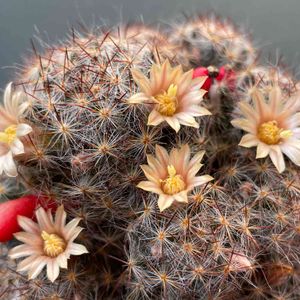 マミラリア 松露 イガグリ頭にまち針だらけ だった仔 花が咲きました とても可愛らしい。