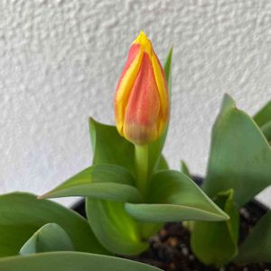 チューリップ🌷 年末に植えてから三ヶ月… 可愛らしい お顔をヒョッコリ…