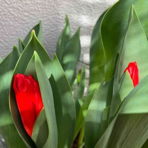 赤いチューリップ 咲いた 咲いた🌷… あと 何色が お顔を出すかナ…