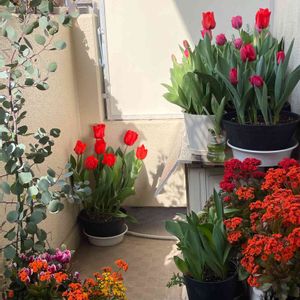 チューリップ カランコエ 南側の狭いベランダです、 定番ですが我が家にも春が訪れています。