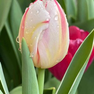 おはようございます こんなに 仲良く寄り添って咲いています、 頂いた MIX球根 何色か❓ 分からず植えたんですが…🌷🌷💕🎶