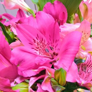 今日のお花 アルストロメリア💗 こちらでは お彼岸の頃から 産直のお花エリアの主役です✨ あれ こんな鮮やかな色 初めて見るわ〜💓🎶 ✧◝(⁰▿⁰)◜✧