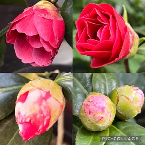 椿・咲羽の誉(さわのほまれ)❤️最後のコはちょっと変わった咲き方をしました(*゚Д゚)オォォ...