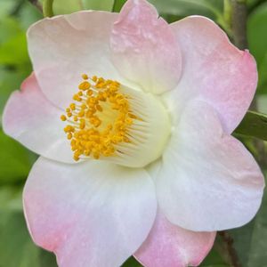 椿・ムーンライトベイ💕蕾が開く直前に落花が続いて、もう咲ないと諦めていたら、ようやく最後のひとつが綺麗に咲いてくれました🙌