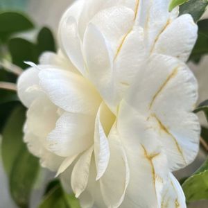 椿・ヌチオズジェム🤍✨1番花は咲く前に落花しちゃったけど、二番花は無事にキレイに咲いてくれました🙌初めましての対面🎶