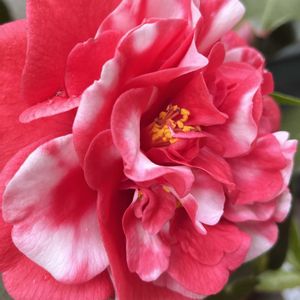 椿・バレンタインデー💝薔薇みたいにステキな立体感だけど、頭が重たすぎて💦5枚目の2つは、春の嵐で脱落してしまいました。°(°´ᯅ`°)°。