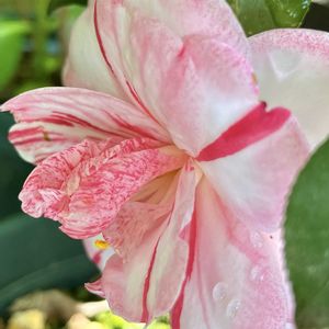 椿・イカリ絞🤍2番花が咲きました🎶やっぱりスッキリした縦絞りの美しさにうっとり…✨