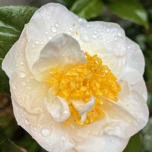 椿・スワンレイク🤍✨どうも咲き切る前に力尽きて落花しそう💧