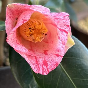 椿・秋一番が咲きました🙌 お迎えから4年ほど経ってようやく一つだけ( ˊᵕˋ ;)💦 咲き分けるタイプで白地に紅色縦絞りが基本色だけど、 桃色単色でした👀 覆輪花や白色も混ざった姿を観るには… まだ遠い未来だろうなー(^◇^;)💧