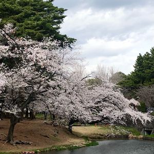 前橋敷島公園の通称三日月池と桜🌸 その名の通り三日月🌙の形をした池なんですよ(イメージ) 子供の頃は池に流れてくる水路でやサワガニやザリガニ🦀🦞が撮れました 今よりも水が綺麗だったのかな? 釣りもできるので、この日もたくさん釣りを楽しむ方たちがいました😊 後ろに見えるのは松の木です😊 敷島公園の大半は松林なんですよ🌲