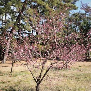 紅梅が咲き始めました😆 朝のお散歩コース志島ヶ原の梅が咲き始めました😁 松の緑、空の青さと対比して美しいです☺️