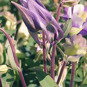 茎まで紫色💜 オダマキの蕾み💟 横向きアップで✨✨ やがて開き綺麗な花になるのね💜 🏷(祝)チーム・ブルー1周年 おめでとうございます🎉 🏷金曜日の蕾みたち💓