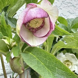 若泉ファームさんのクリスマスローズ dd ホワイト さくらピコティ とても優しい雰囲気♡ お迎え 25-㉕ 風が強い日が続いていて週末から毎日 消防車の音がする