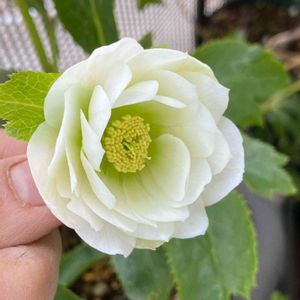 これが今季、クリスマスローズの一番最後の開花株みたいです❣️ 若泉ファームのホワイトピコティダブル 花は小さめですが美しいです😍 昨年お迎えした若泉ファームの4鉢は全て花を見られましたが、咲かなかった鉢は4鉢あります😓どれも新しい綺麗な葉っぱが出てきているので来年に期待です😊