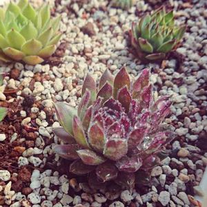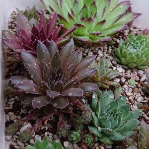 今日は寒いですね🌧️ 先日植え替えたセンペルビウムたちも段々と色付いてきました。 この色が変わっていく姿もきれいだなと思うわたしは、立派なセンペル中毒(笑)