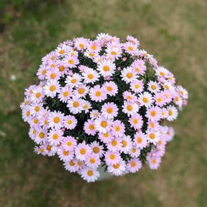 1年4ヶ月目の #マーガレットローリー 今年2回目の満開🌸 3月に投稿した時よりもお花が密になりボリュームアップして咲きました🥰 1回目の満開後、 お花を切っていると株中に枯れた蕾が沢山ありました。 冬の間に枯れた様です🥲 その枯れた蕾を全部プチプチと取り除く事約一時間⏰ その甲斐あって持つ所が無い程に丸くぎっしりと新しいお花が咲いてくれました🌸 今回の満開まで2ヶ月程時間が掛かりましたがプチプチして良かったです😀 大きい鉢に植え替えればもっと大株になると思いますが、持ち運びが出来なくなるのでこのままで😅 暫くこの可愛い状態を愛でたいと思います。 その後は切り戻して梅雨越し、夏越しに備えます🤔