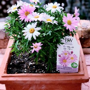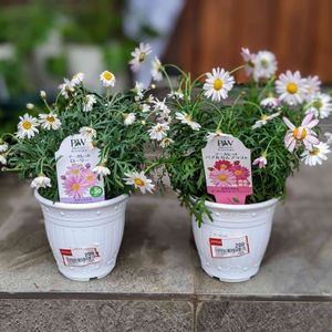 (。・ω・)ノコンバンハ☆ 昨日薬局スーパーのお花コーナーにありました😊 PWさんの花色が変わるマーガレット💟ローリー 早速お連れし今日植え替えホヤホヤ~~♨️(๑^ 艸^๑)