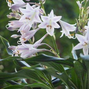 "四季の小径" 〜秋〜 <木枯らしギボーシの花> ねじれた細長い葉の中から、妖精が飛び出しているよう🧚♂️♪( ´▽`)🧚♂️